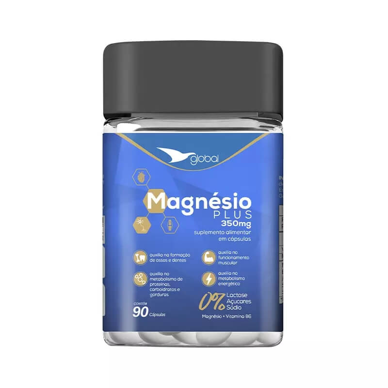 O Suplemento Magnésio Plus da GLOBAL SUPLEMENTOS contém 350mg de magnésio em cada cápsula, mineral que desempenha um papel vital no funcionamento do sistema nervoso, na saúde muscular e no fortalecimento dos ossos. Com uma fórmula de alta absorção, este suplemento contribui para o equilíbrio dos eletrólitos e ajuda a reduzir cãibras musculares.