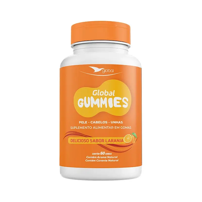 Suplemento Pele, Cabelos e Unhas em Goma Sabor Laranja - 60 Gummies - GLOBAL | Fortaleça Sua Beleza